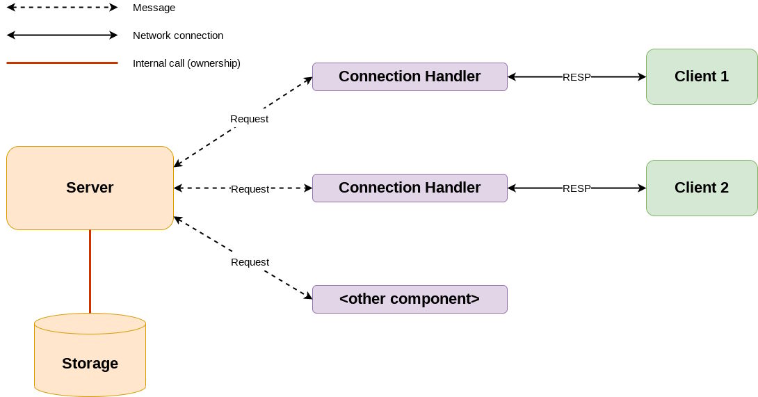 Connection Handlers receive RESP commands in binary form through a network connection, and their task is to convert them into Request messages. It's a good idea to decouple the interface we show to the client (RESP commands) from the interface the server uses internally.
